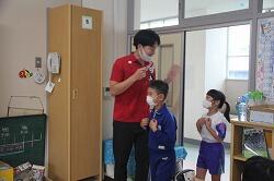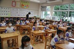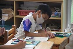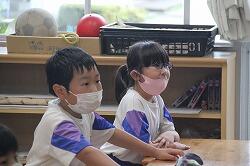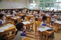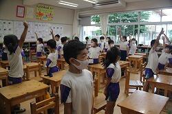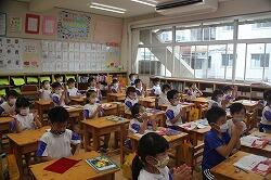 今日の音楽は、ニ長調の和音づくりを行いました。それぞれの音を「ル」の発音で歌い、音を重ね合わせていきました。マスクをしたまま音を出すのにはまだまだ違和感はあるようですが、対策を徹底しての音楽学習です。