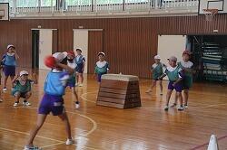今日は「投げる」学習をしました。子どもたちの投げる力は落ちてきています。今日は、ゲーム形式で、跳び箱の上の箱を決められた球数で落とすルールで行いました。強く投げれば破壊力はありますがコントロールは落ちます。弱く投げれば逆です。各自考えながら投げましたが、箱までノーバウンドで届くのも一苦労でした。