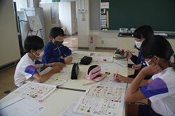 家庭科は「ゆでる調理」を学習しています。今日は、野菜によって水からゆでるか、お湯からゆでるか調べました。また、担任の模擬調理を見て、計画立てに興味が高まりました。