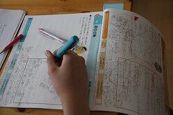 4年の社会は地図の見方を学習しました。「真岡市は栃木県の中央から見てどの方位にある?」など方位の見方です。どこを中心に置くかで方位は変わっていくことをとらえました。最後に関東地方の県名を書きました。いきなり課題を出され、覚えている範囲で書こうとしましたが、徐々に、地図を使って調べればいいことに気付き始めました。