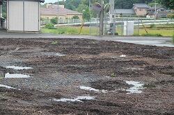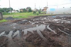しかし、長い間に、駐車場は写真のように傷んでしまいました。梅雨が続くこの時期、駐車するのも一苦労な状態です。