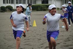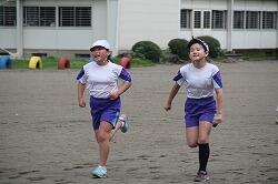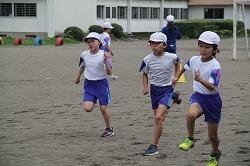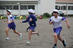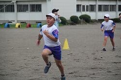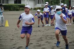 4年生の体育は「走る」学習を行いました。足を上げる、大きく歩幅をとって走るなどの練習をした後、リレーを行いました。ルールは特別ルールです。コロナウイルス感染予防のためバトンは使いません。近くまで来たら、次の走者が発信するやり方です。