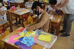 なかよし学級の自立活動、ひまわり学級の生活単元学習では、七夕の飾り作りを行いました。願い事を短冊に書いたり、折り紙を切りながら、思い思いの飾りを作りました。願い事が届くといいですね。