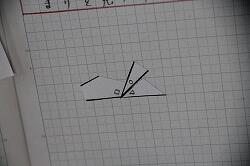 算数は、三角形の内角の和を学習しました。最初に分度器で測りました。和を出すと、それぞれが微妙にずれてしまいました。そこで、実際に三角形の図をカットし、さらに角を含めて三分割しました。それをノートに張り付けると見事一直線。180度になることを体感しました。