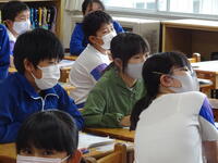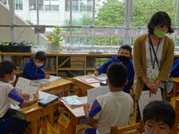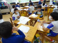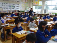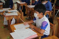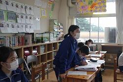 6年の外国語では、修学旅行の思い出を英語で話す学習を行っています。各自が、思い出の場所での出来事を英語でまとめ、今日はスピーチです。文面を見ないで、暗唱する児童も出てきました。発表者以外は、内容を聞き取り、プリントにまとめていきました。そして、上手なところを称賛しあいました。