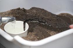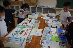 理科では「流れる水のはたらき」を学習しています。前時では、砂山に川を作り水を流しました。今日は、さらに水の働きが確認できるよう、湖、滝、川のジオラマを作り、流れる水の三つの働きを確認しました。