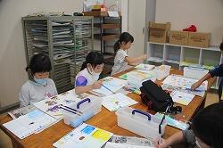 担任がまとめたものを、隣とペアになって確認します。この、友達に説明するという活動で、説明した本人の学力の定着が図られていきます。
