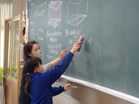 課題に対して、代表が考えを黒板に示します。全員が真剣にそれを見ながら代表の考え方を理解します。