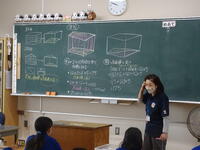 6年生は、算数の立方体の体積の学習をしていました。基本的な技能は全員理解しているので、グループではなく、全体で考えていきます。