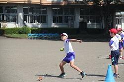 体育では「投」の運動を行っています。数年前まではソフトボールを使って行っていましたが、近年では「ジャベリックスロー」を行っています。投げる瞬間に、ジャベリックに回転をかけることが一つのポイントになります。練習をした後、記録を取りました。ここでも自己の記録に挑戦です。