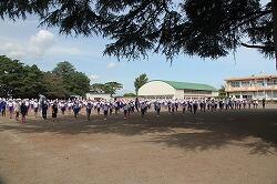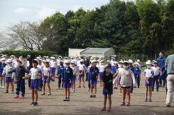 気温も下がり始め、業間も過ごしやすくなりました。今日から、体力作りがスタートです。運動会までは、今年度、若手職員が考案した「中村体操」を行っていきます。これは、運動会の全体種目にもなっています。しかし、今日は第1回目。整列の仕方を確認した後、ラジオ体操を行いました。