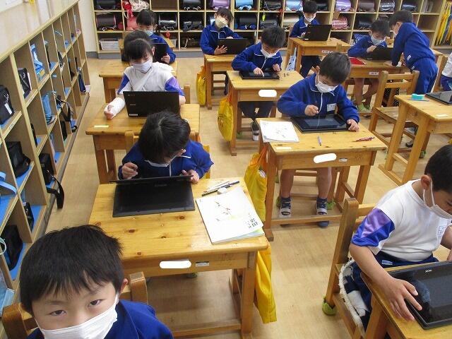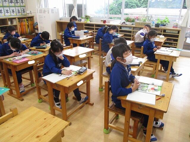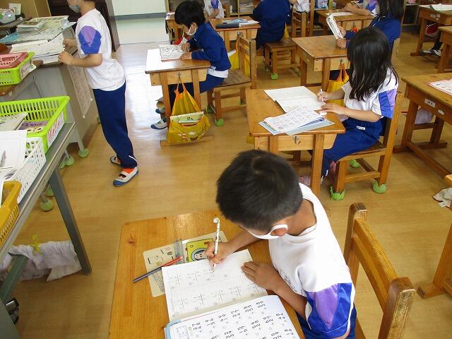 今日は、朝から雨模様で外で思いっきり遊ぶことはできませんでしたが、授業はしっかりと取り組んでいる中村小の子どもたちです。