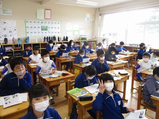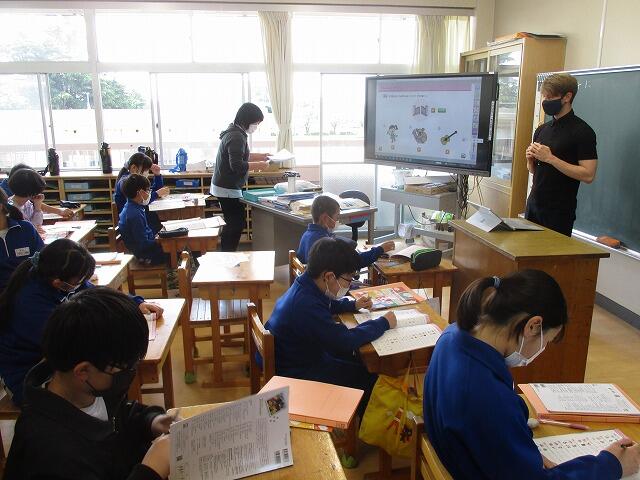 今日は、JTEとAETの先生と一緒に外国語の授業(3年・5年・6年)を実施しました。