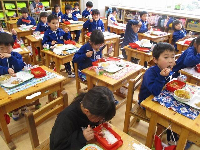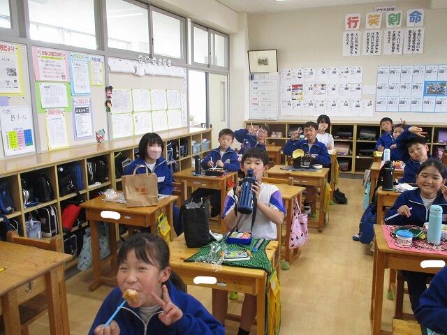 みんなお弁当を作ってくださった方に感謝して、楽しみにしていたお弁当を食べていました。