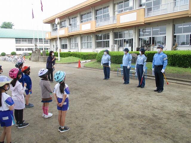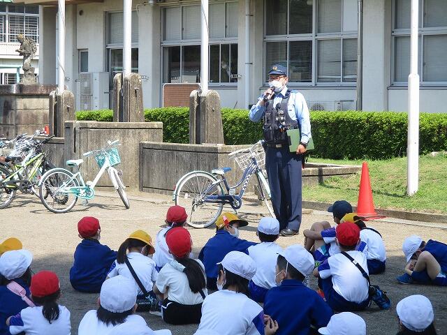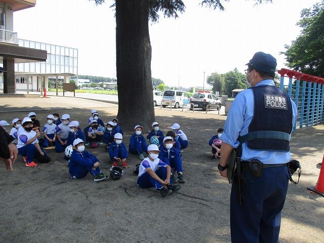 本日は、中駐在所の巡査長様にご協力いただき、1、2年生と4年生の交通安全教室を実施しました。