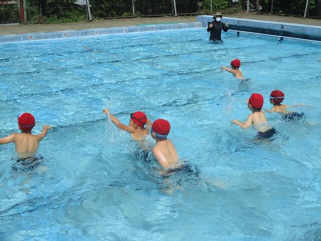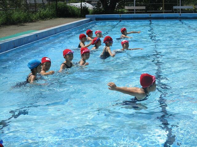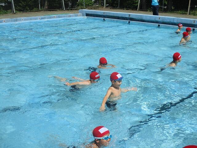 2校時、1年生が体育で水泳の授業をしていました。水温は29度あり、児童は気持ちよさそうに活動していました。