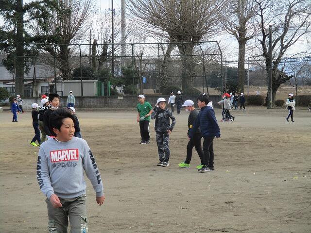 業間には、雪がパラパラ舞っていましたが、外でいつものように遊んでいました。