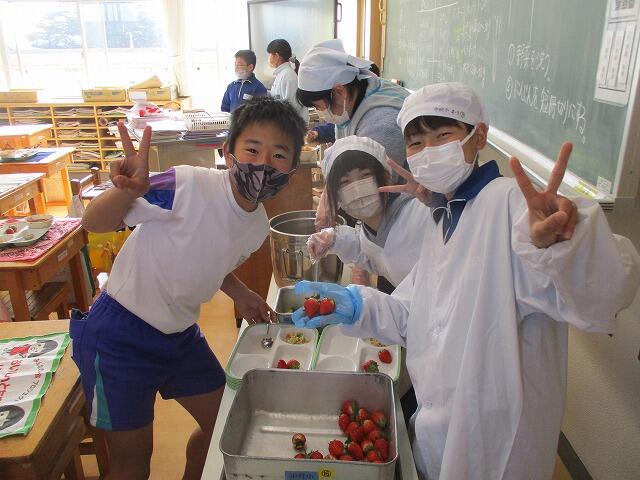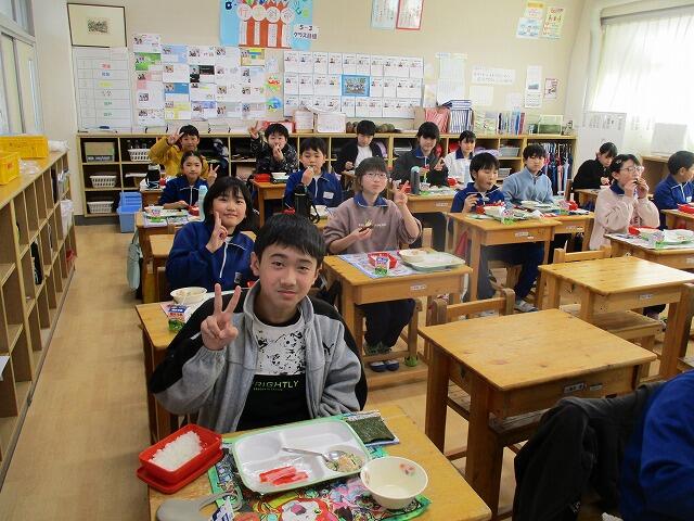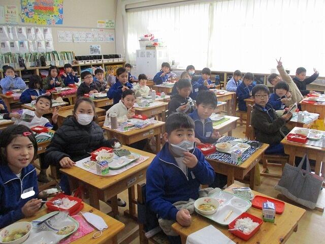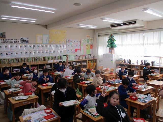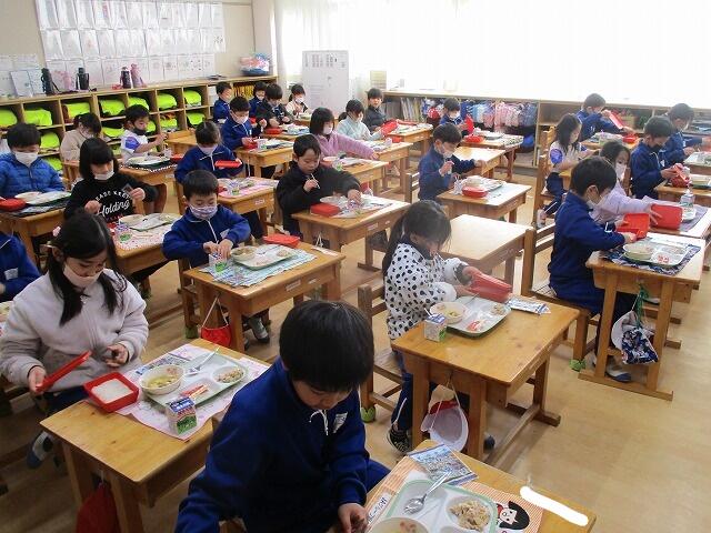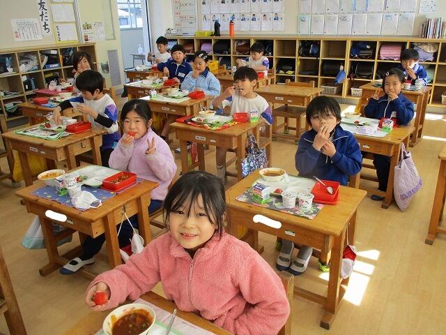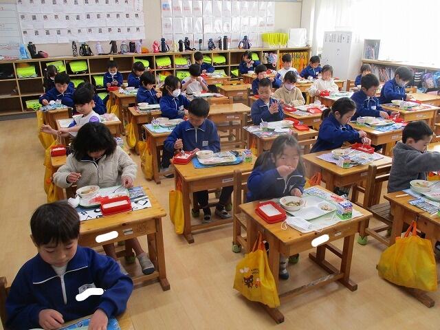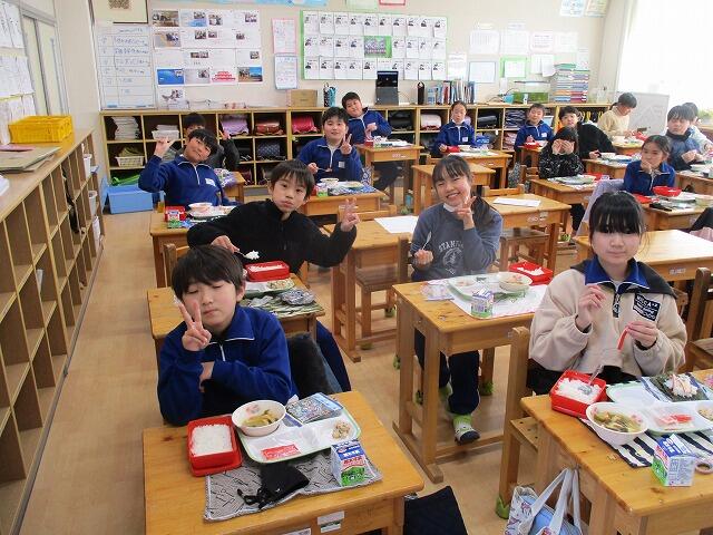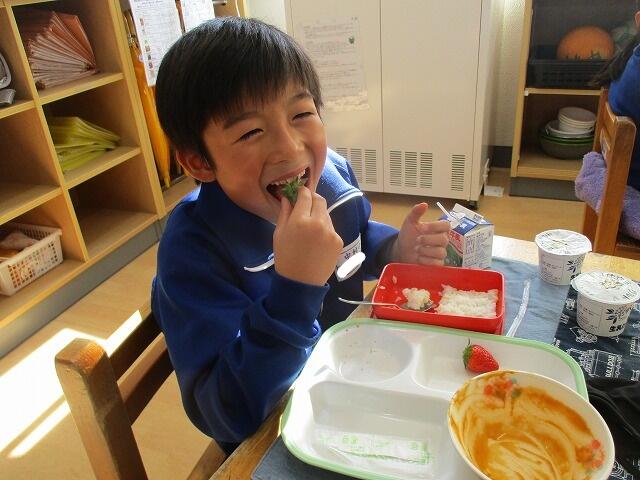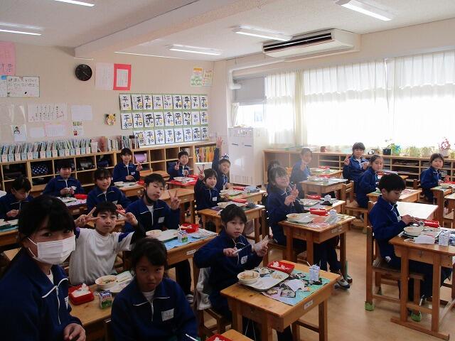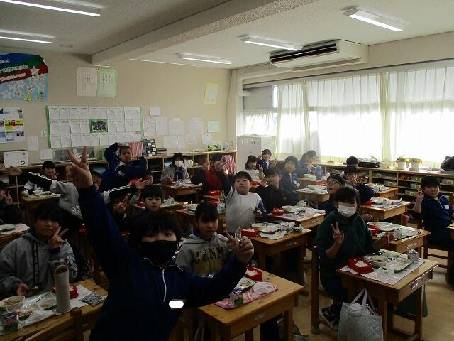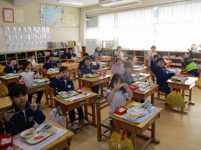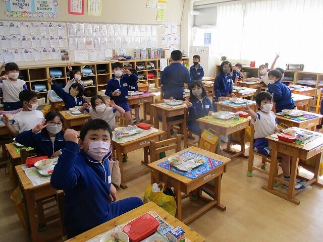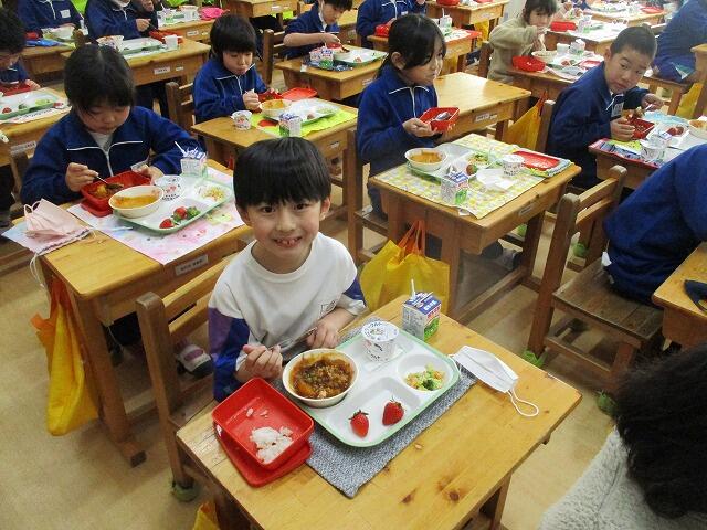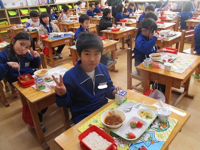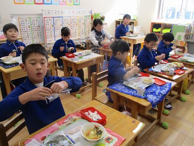 今日の給食は、手巻き寿司でした。1年生は、初めての手巻き寿司ではないでしょうか。