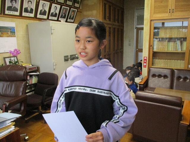本校からは、6年生の代表児童が、交通安全作文の朗読を行いましたが、落ち着いて堂々と語りかけていました。