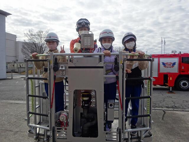 その後、4年生から6年生は場所を移動して、救助袋実演見学を行いました。万が一のためにある救助袋がどのようなもので、どのようにして避難するか、代表教員の様子や感想をもとに子どもたちは理解を深めていました。