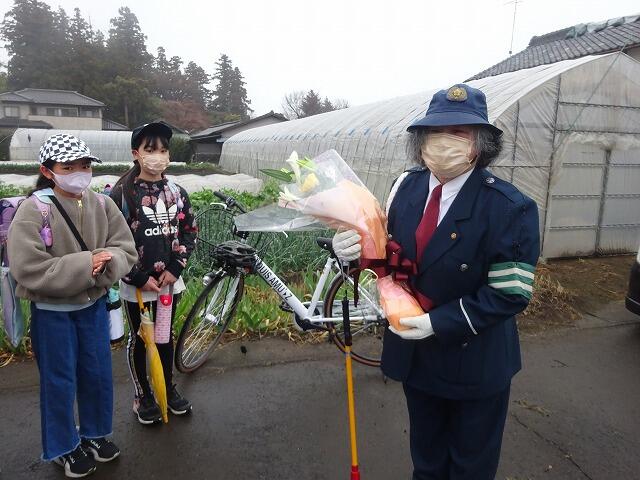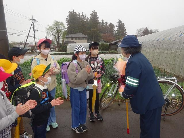 33年間、若旅地区の横断歩道に立って、毎朝、交通指導をしてくださった方が本日をもちましてご退職となりました。