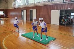 2年の体育は、俊敏性を求めた「走」の運動を行いました。マットを使い、マットを「島」とした「しまおに」を行いました。昔でいう「高おに」です。逃げる、追う、そして島から出た人を追う、目まぐるしい動きをこなしていきました。