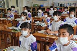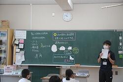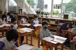 5年生の社会を行いました。「米の生産」についての学習を行いました。電子黒板に映された日本地図と取れ高の数値を読み取ります。取れ高の多い順からノートに書きだし、県名は地図を使って確認していきました。数値には同数量の県があり、注意深く見ることが大切なことも学習しました。