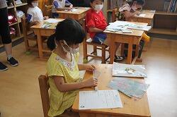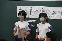 国語では物語の読み取りの学習をしています。今日は「サラダでげんき」の登場人物が出てくる順番、気持ちを読み取り、プリントにまとめていく学習を行いました。