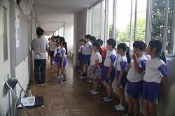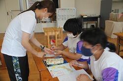 健康福祉委員会の児童が定期的に各クラスを回り、衛生検査を行っています。新型コロナウイルスが猛威を振るうこの時期だからこそ、意識を高めさせたいと考えています。