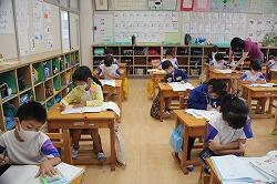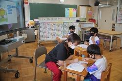 2年生もなるとたくさんの漢字を学習します。今日は、「動物に関する幹事は?」などと、ジャンル別に漢字を書きだしました。画数も多くなってきます。「鳥」では「長い線を忘れないでね。」などとポイントを示しながら行っていました。確実に書けるように指導していきます。