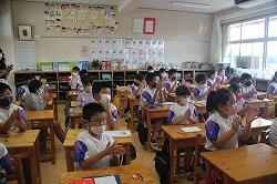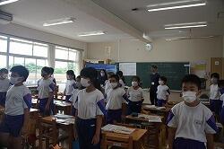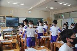 学級委員任命式を行いました。平常ならば体育館で行います。しかし、新型コロナウイルス感染防止のため、今回は初の試みでzoomを使って行いました。校長室で行われている任命書授与の模様を各教室に配信しました。自分たちのクラスの学級委員が電子黒板に映し出されると子どもたちは満面の笑みを浮かべ、大きな拍手を送っていました。