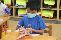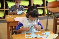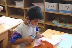 紙に描いた図形を切り取り、さらに形について意識していきました。