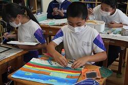 絵画の作品制作を行いました。題は「心の模様」。今感じてることを、多種の色を作り、彩色していきました。