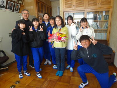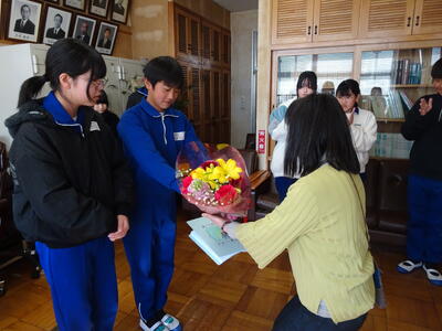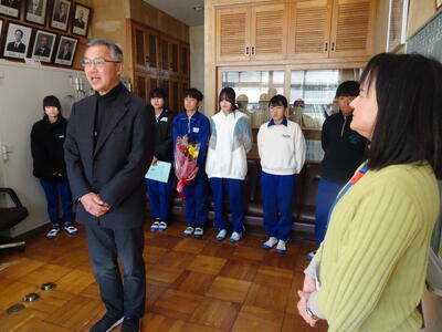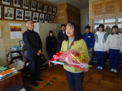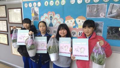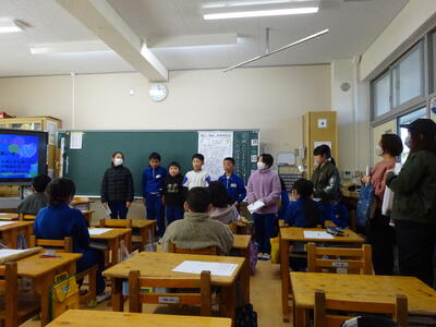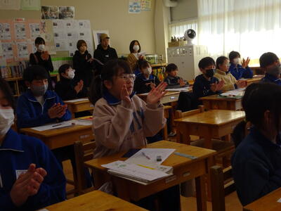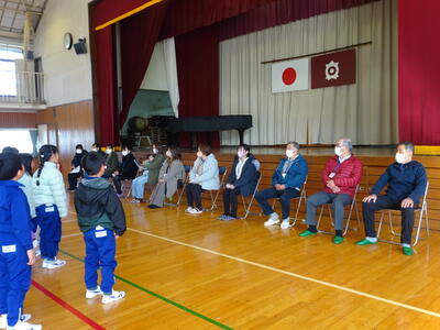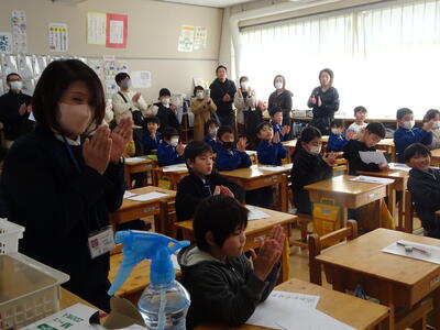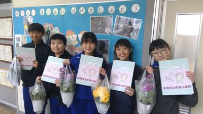 1月からお世話になった先生の離任式がありました。児童からのお手紙と花束が渡され、あいさつがありました。中村小学校の子供たちのいいところをたくさん見つけて褒めていただきました。気持ちのよい挨拶ができ、思いやりの気持ちと感謝の気持ちを素直に表すことができると言っていただきました。いろいろとありがとうございました。
