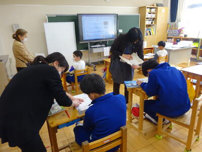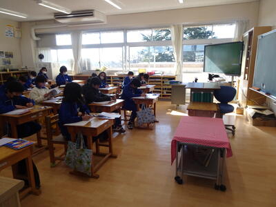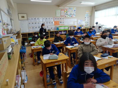 職員の研修のために、研究授業がありました。子どもたちのクラスが自習になるので、見守りを保護者に募り、8人の方が参加してくれました。大変ありがとうございました。どのクラスも課題に集中して取り組んでいたとのことでした。また、先日は5年生のミシンボランティアとして、各クラスごとに指導をしていただきました。
