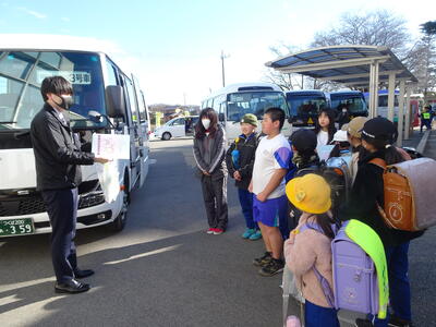 7台のバスの運転手さんに、子供たちからのお礼の手紙とお花を渡しました。いつも安全運転ありがとうございます。これからもよろしくお願いします。