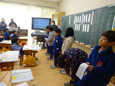 授業参観では、1年のまとめのこの時期は、成果の発表が多かったです。緊張しながらも一生懸命活動していました。ご参観していただきありがとうございました。子供たちへの励ましもどうぞよろしくお願いします。