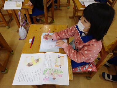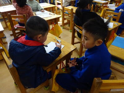 「やさしさ」について考えました。優しくされた人はもちろん、優しくした人もうれしい気持ちになることに気づくことができるが目標でした。自分の考えを友達に伝えたり、発表したり、一生懸命取り組んでいました。