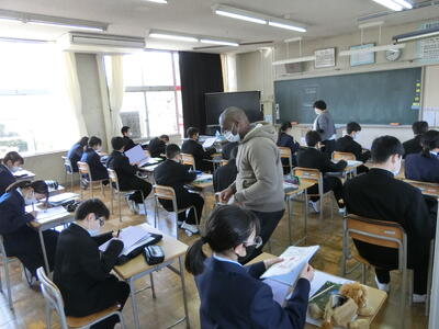 入学して、初めての英語の授業です。緊張した面持ちで、授業を受けていました。