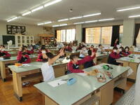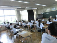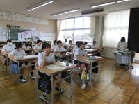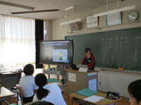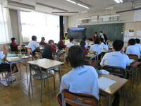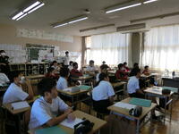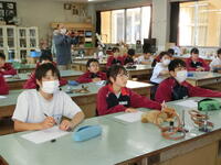 真岡市の「もおかエコの会」による出前授業が行われました。1年生は、総合学習で「環境」について学習しています。今回は、理科室で、色々な実験をしたり、現象を見せてくれたりしました。とても興味深く、参加していました。