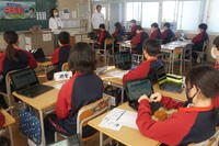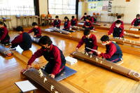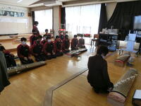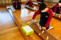 調理実習の後、午後は、音楽の時間で「琴」の授業が行われました。柳先生をお迎えし、先生の演奏を聞かせていただきました。そして、実際に「さくら さくら」を練習しました。みんな、意外とうまく弾いていたのには驚きました。