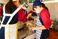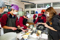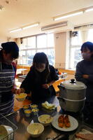 今年度最後の調理実習が行われました。魚の調理として鮭のムニエルと卵の蒸し料理を作りました。ボランティアとして、お母さん方が3名来てくださいました。実習中、学校中でいい匂いが漂いました。
