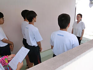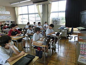 本日の朝会は、校長講話をリモートで行いました。今回は、現在、海外交流しているオーストラリアについて、英語で説明しました。オーストラリアの英語の質問に、生徒たちもしっかり答えることができました。その後は、学校評価アンケートで、生徒からいくつかの質問があったので、生徒指導主任より対応についての話がありました。
