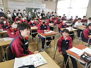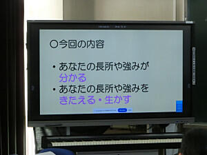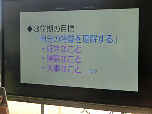 3年生の道徳で研究授業が行われました。勤労についての内容で、好きな仕事を選ぶか安定かなど、将来について考え、積極的に発表していました。その後は、グループで話し合い、発表を行いました。