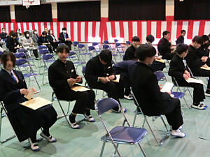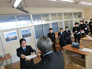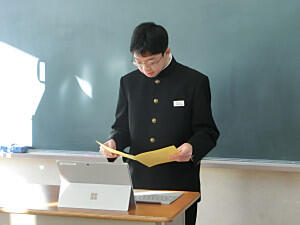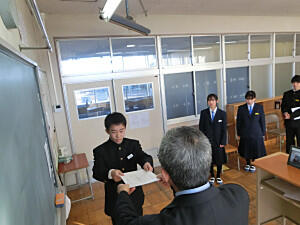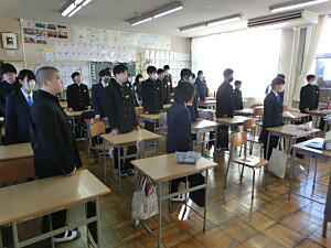 いよいよ、入試が始まり、進路に向けて頑張っている3年生。今日は、学年末テストになります。1年間の力を出し切ってください。