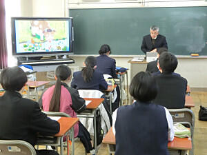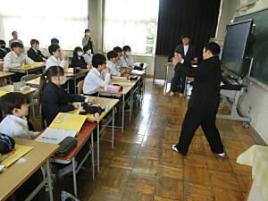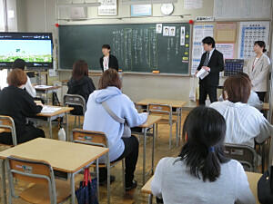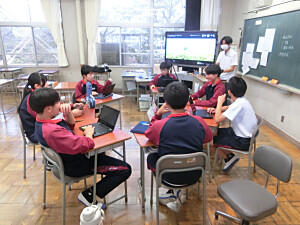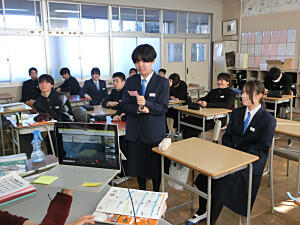 2年生の英語で研究授業が行われました。SDGsに関する内容で、グループで話し合い、その後、発表の動画撮影を行いました。生徒も成功するまで何度も撮影を行っていました。ICTを活用した素晴らしい授業でした。