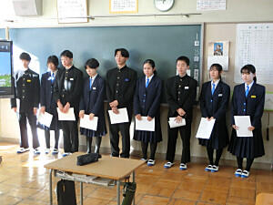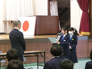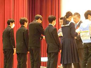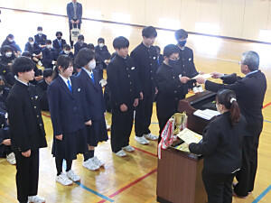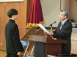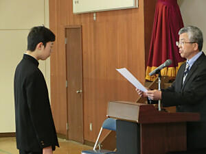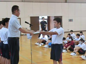 最後は、夏休みに行われた陸上競技大会の表彰でした。関東、全国大会の共通男子3000mに出場した2年生の表彰でした。全国大会では、惜しくも入賞はできませんでしたが、関東大会で8位に入賞することができました。