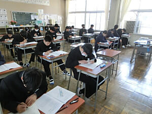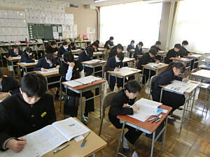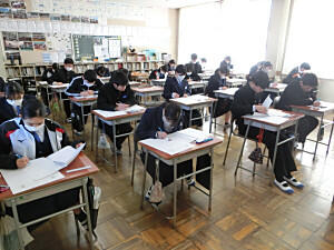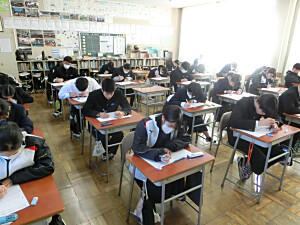 本日は、3年生が確認テストを行っています。いよいよ進路選択の時期になってきました。今まで頑張って力をつけてきた結果が出ることを願っています。