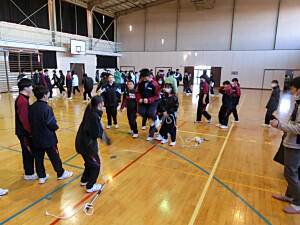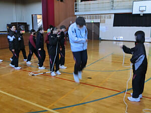 3回目の冬期体力づくりは縄跳びです。今年も「8の字もおかぴょん」にチャレンジします。昨年の2年生が241回で1位に輝きました。今年はどうでしょうか。1回目のチャレンジは、1年生82回、2年生160回、3年生133回でした。次回のチャレンジではさらに記録を伸ばすことでしょう。