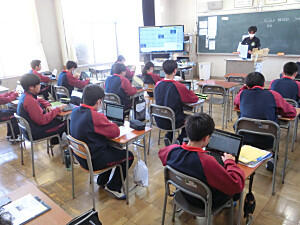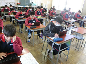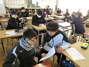 4校時に2年生が、来年度から行われるCBTとちまるチェックの練習を行いました。職員も使い方がわかるように、生徒と一緒に練習しました。